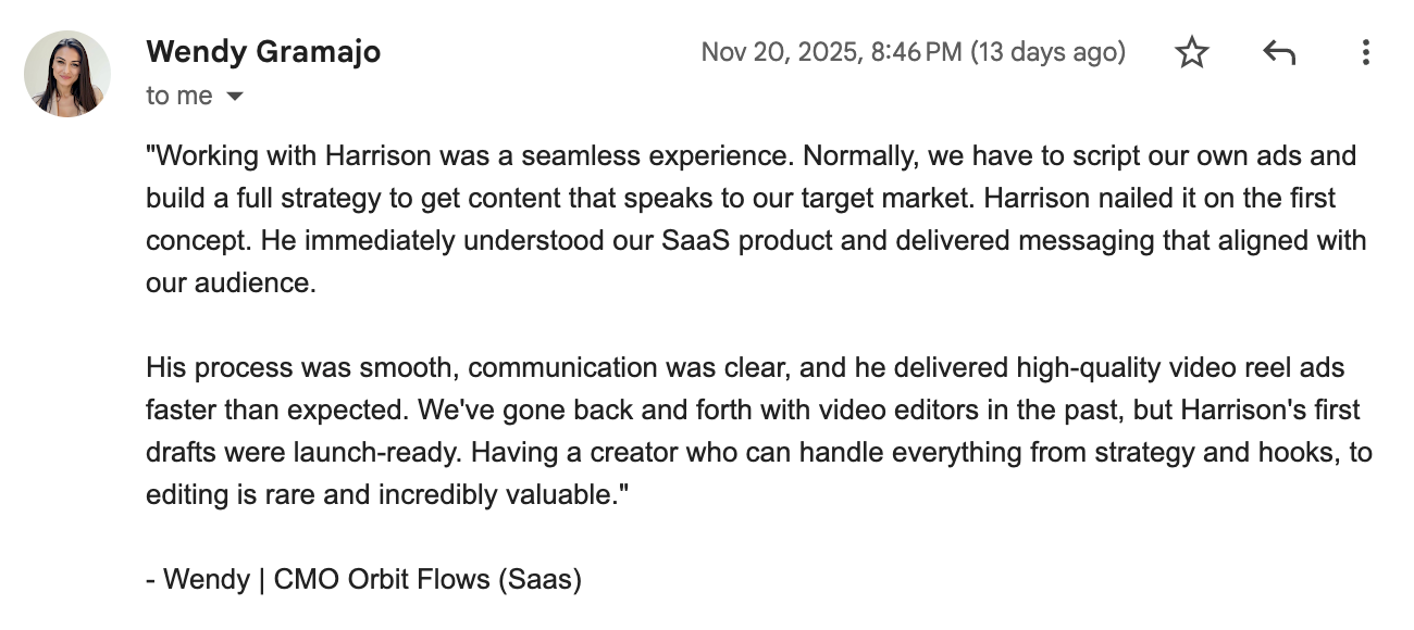 Fast cuts, authentic moments, and a clear showcasing drove a strong ROAS, and steady profit for 6+ weeks straight.